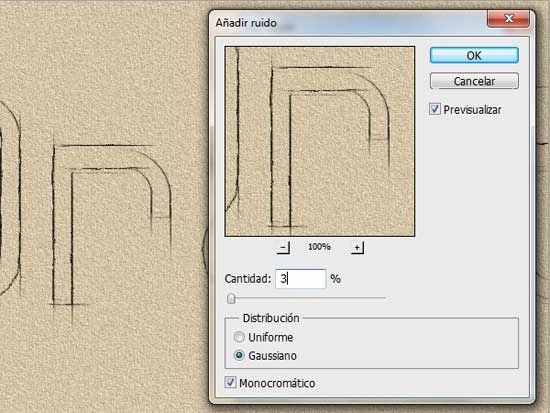 Finalmente ve a Filtro/Ruido/Añadir ruido y aplica los siguientes valores.