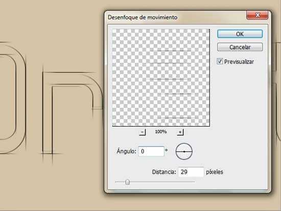 Después de añadir todas las líneas horizontales que tu texto precise, ve a Filtro/Desenfocar/Desenfoque de Movimiento y aplica los siguientes valores.