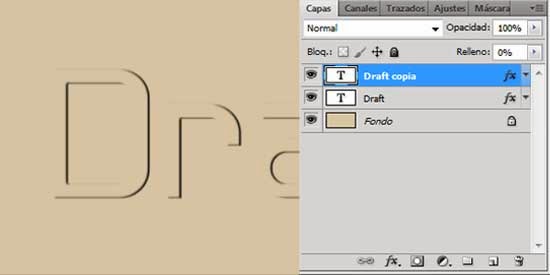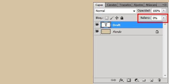 Baja el Relleno al 0% en la capa de texto creada.