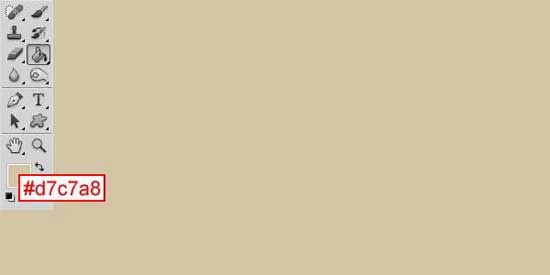 Crea un Nuevo documento de 1000 por 500 pixeles, después selecciona la herramienta Bote de pintura y rellena el lienzo con el color #d7c7a8.