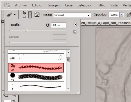 Selecciona la herramienta Pincel y haz clic sobre la flecha para abrir el Selector de pinceles.