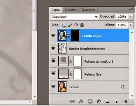 Pulsa botón derecho sobre la capa Fondo y elige la opción Duplicar capa, llamando a esta nueva capa Bordes resplandecientes.