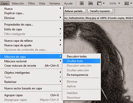Ve ahora hasta el menú Capa/Máscara de Capa/Ocultar todo.