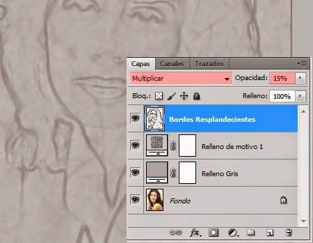 Ajusta ahora su Modo de fusión a Multiplicar con una Opacidad del 15%.