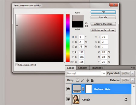 Nombra la nueva capa como Relleno Gris en el cuadro de dialogo que aparece y deja los demás valores tal y como se muestran por defecto.