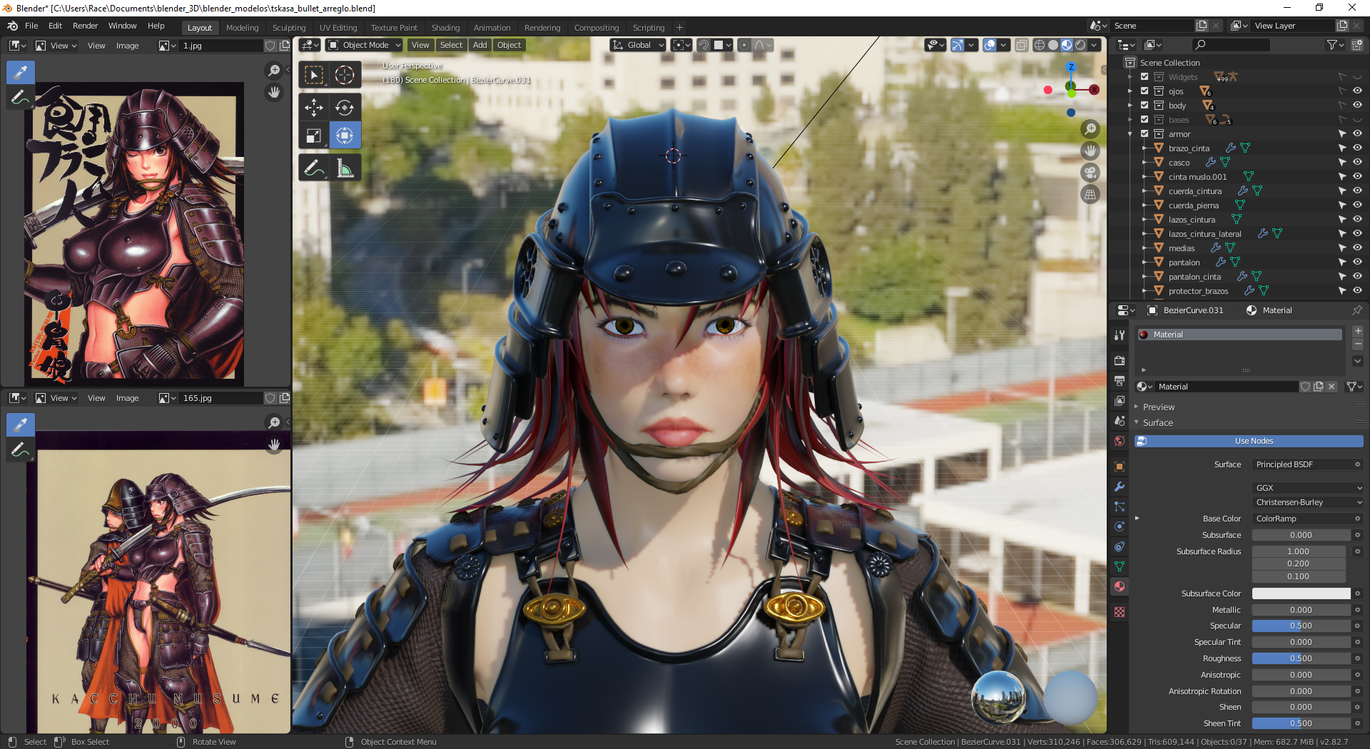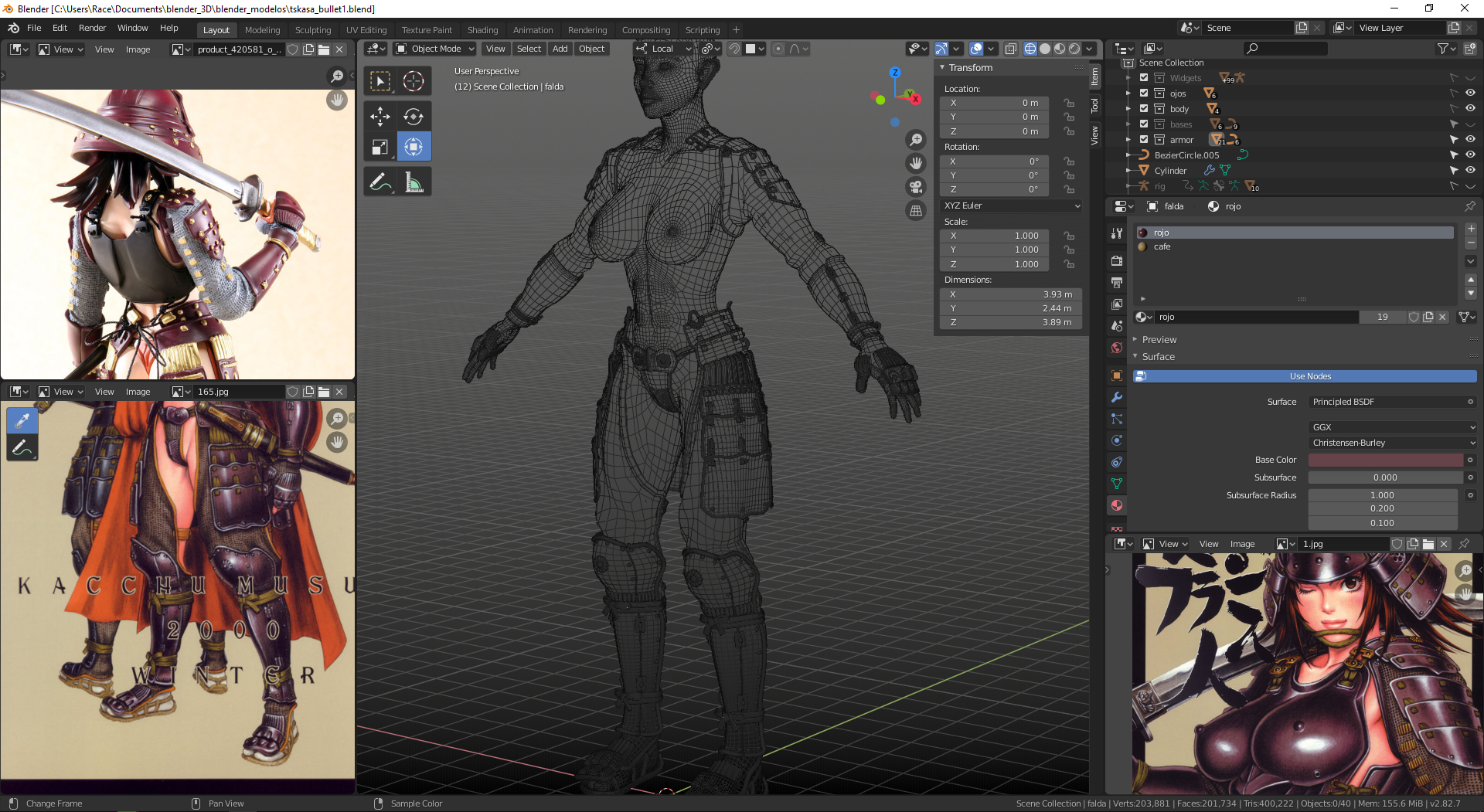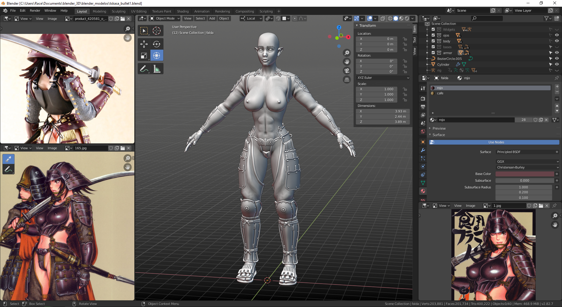 Hola de nuevo; dejo por aquí mi segundo intento de modelar esta obra de arte de Musume, que avanza muy rapido gracias al nuevo Blender, a ese gran equipo y la comunidad que aporta su granito de arena. El tekkaman lo he dejado por el momento, tengo que reunir informacion para las articulaciones.