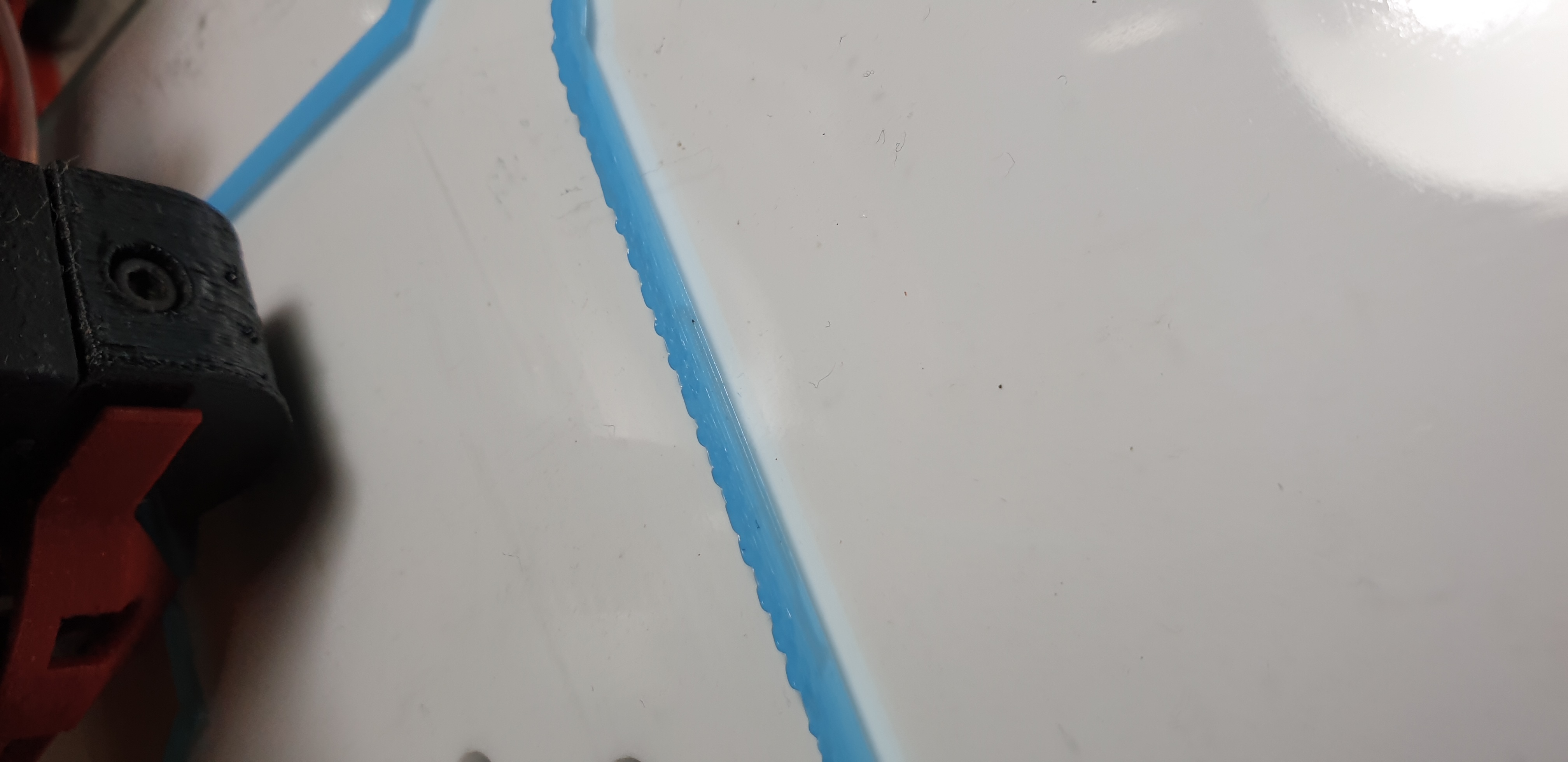he nivelado la cama y esas cosas, pero al imprimir las líneas no quedan bien, por más que busco no consigo identificar el problema. Os dejo una fotografía a ver si me podéis ayudar a solucionarlo. Las líneas al imprimir no me salen rectas y quedan unos pequeños bultos a los lados y por más que toco mis conocimientos aun son limitados.
