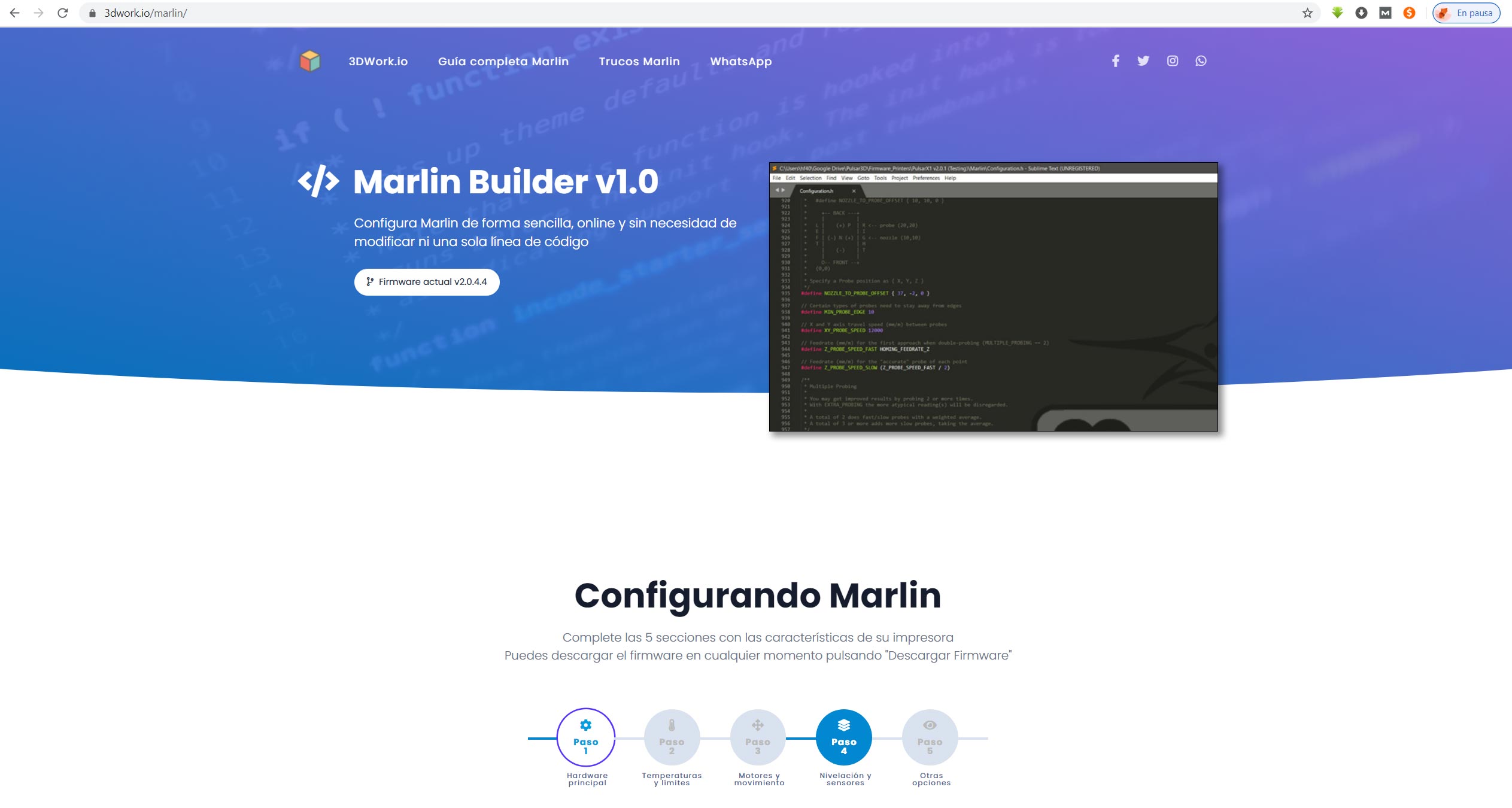 Enlace https://3DWork.io (Herramientas -> Marlin Builder)