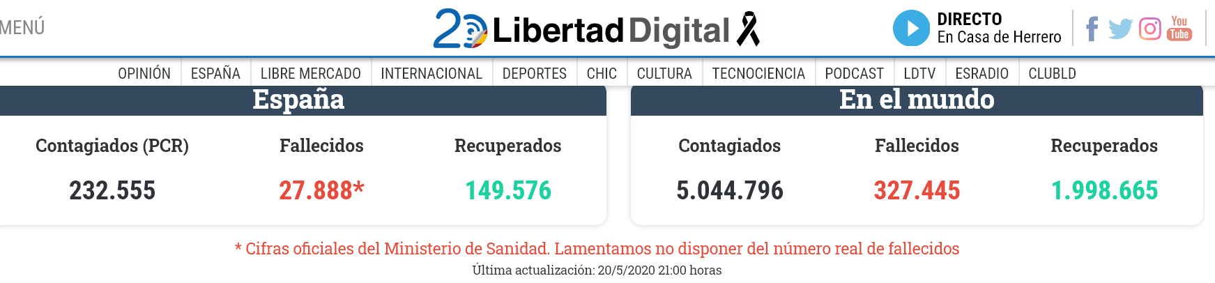 El MoMo o exceso de mortalidad ya nos da más de 100.00 muertos mientras el Gobierno de España solo reconoce unos 89.000 fallecidos.