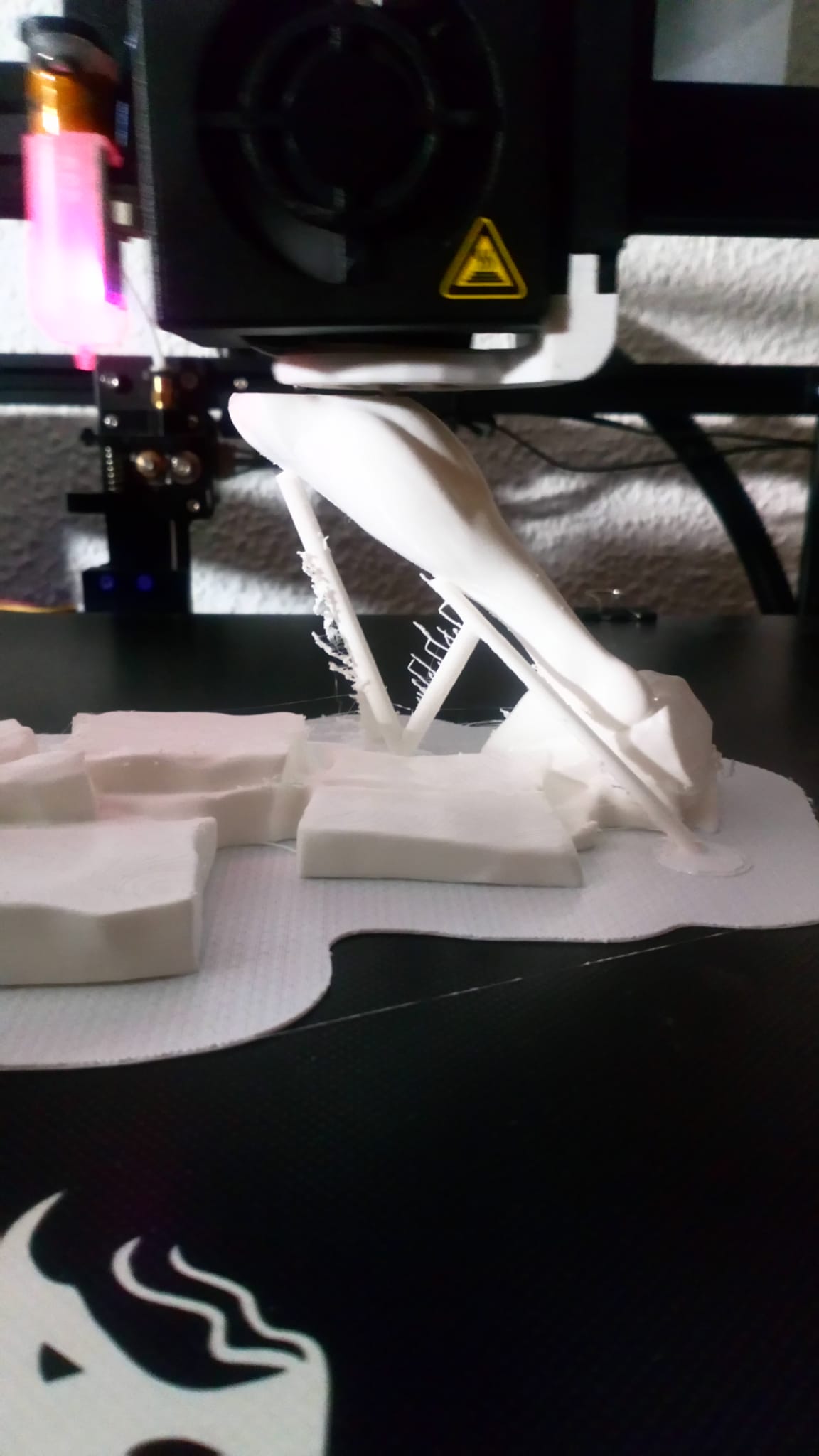 claro jajaja lo que memolesta es los restos que genera tanto en la figura en si como en los soportes como en todos lados y porque no e echo fotografías de más detalle pero es toda la figura con restitos de plasticos en todas las formas hilos palitos de todo.