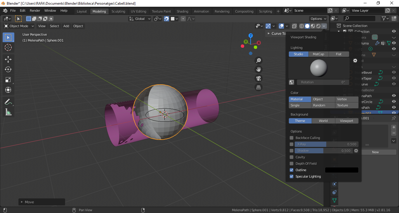 Adjunto una imagen. El cilindro es una Bezier con un Bevel