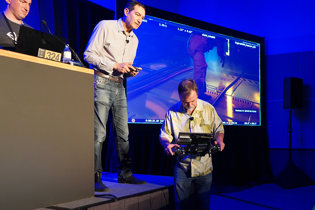 Durante el pasado SIGGRAPH, un cofundador de Digital Monarch Media, recreó una escena renderizada en tiempo real en Unity mientras daba una charla sobre el mismo tema, mostrando personalmente el uso de las herramientas de producción virtual Expozure. En la imagen podéis ver el momento.