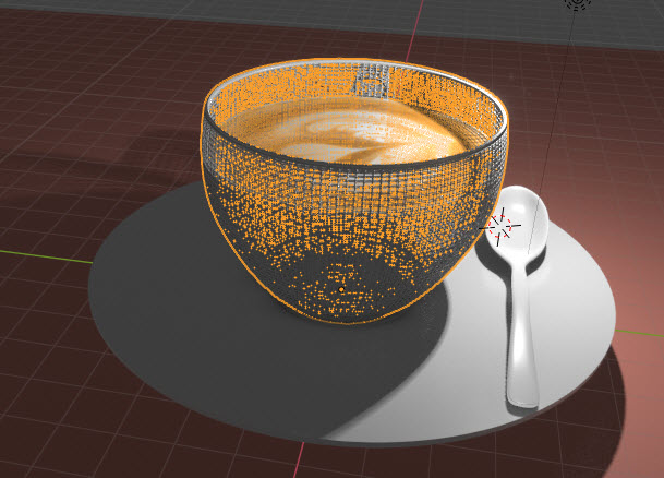 Si cojo la taza por separado con el modificador wireframe se acerca más a lo que busco, pero todavia está lejos: