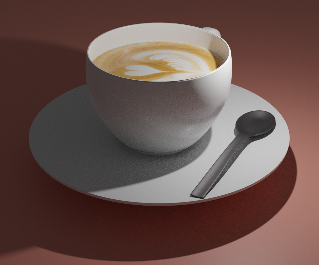 De momento así queda la escena si la dejo color porcelana como taza y plato: