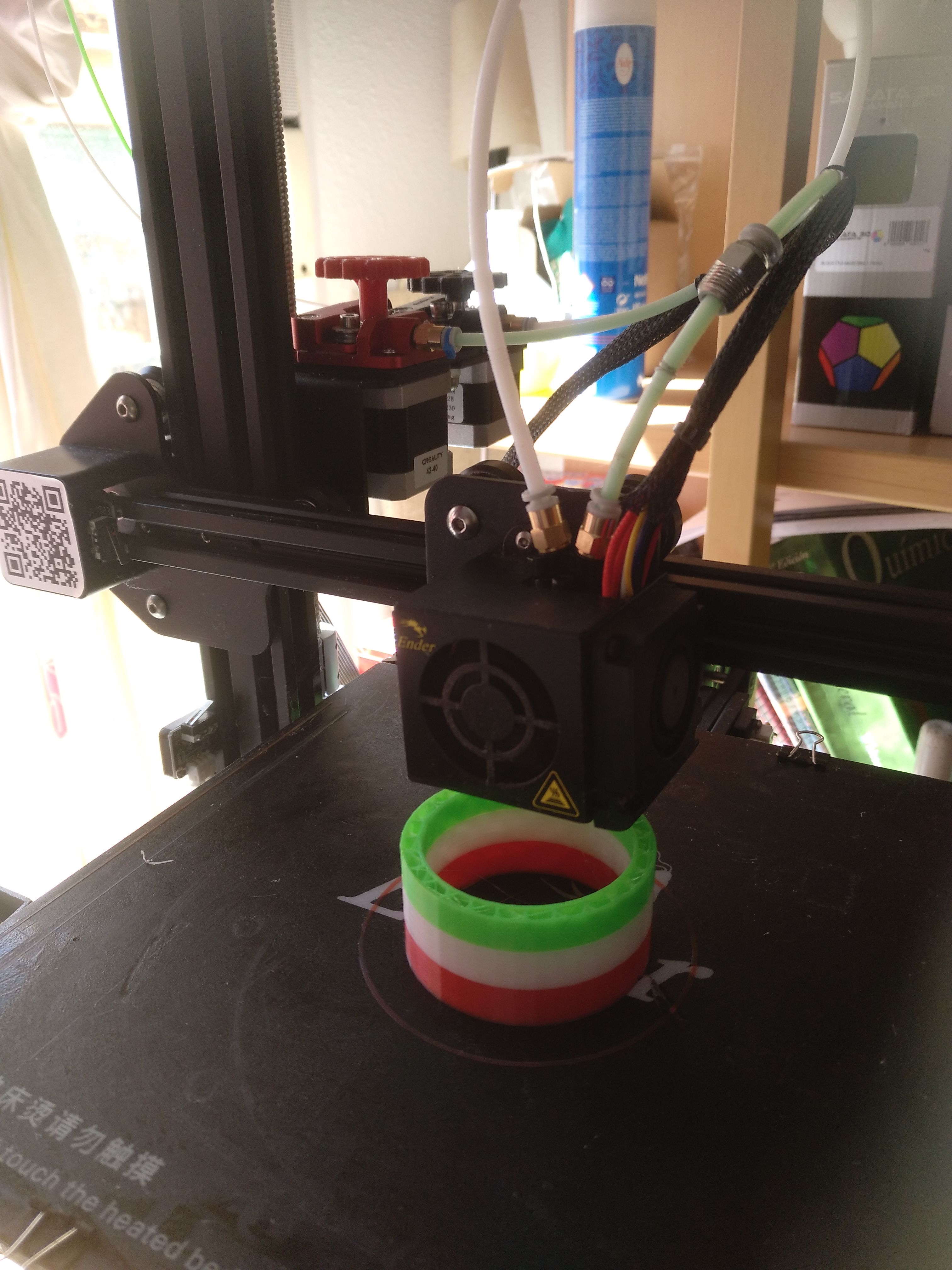 Hola, después de varias decepciones con el cambio de filamento durante la impresión en colores mediante la opción de Pause and height del Cura, porque si no andas con tiento se me movía el eje Z, con la consiguiente pérdida de la impresión decidí tunear mi impresora.