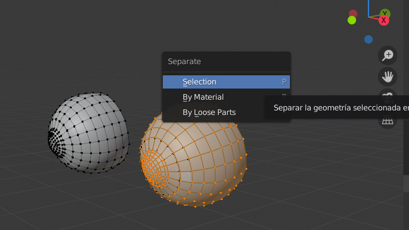 Si quieres separarlos, solo tienes que seleccionar el grupo de vértices del uno de los ojos y presionar letra P > Selection