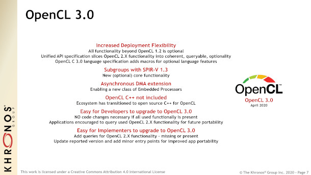 Khronos Group ha publicado la especificación final de OpenCL 3.0, junto con un SDK inicial de OpenCL destinado a permitir a los desarrolladores comenzar a codificar aplicaciones OpenCL.