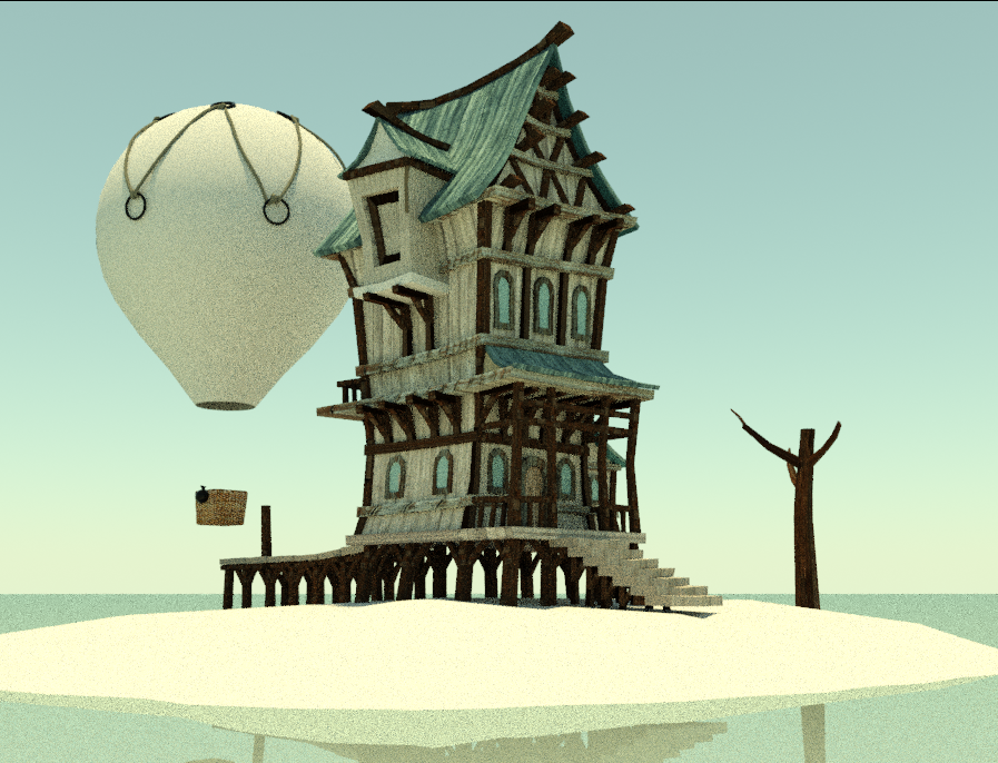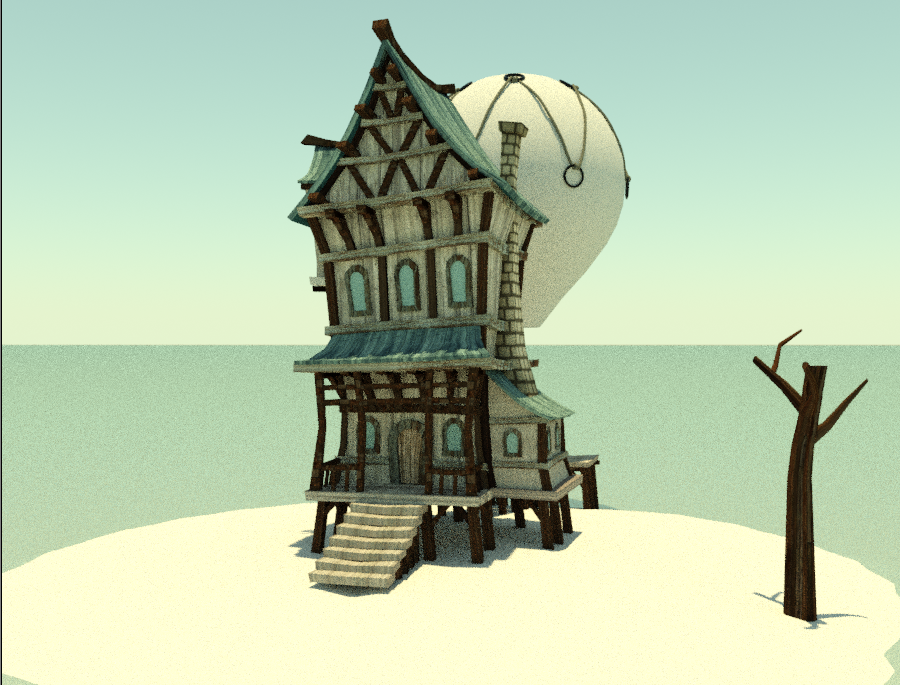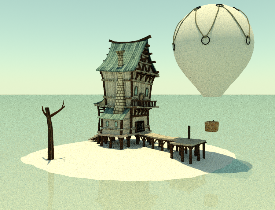 Perdón, siempre se me olvida. Estoy usando 3DS Max. No había hecho cuerdas nunca y he echado un ojo a un par de tutoriales. Las cuerdas dan un par de vueltas a las anillas del globo y luego van a la siguiente anilla. No sé si le pongo muchos vertex a la línea o son pocos, pero por más que los muevo para que se adapte a la forma del globo no consigo que quede uniforme, tensa.