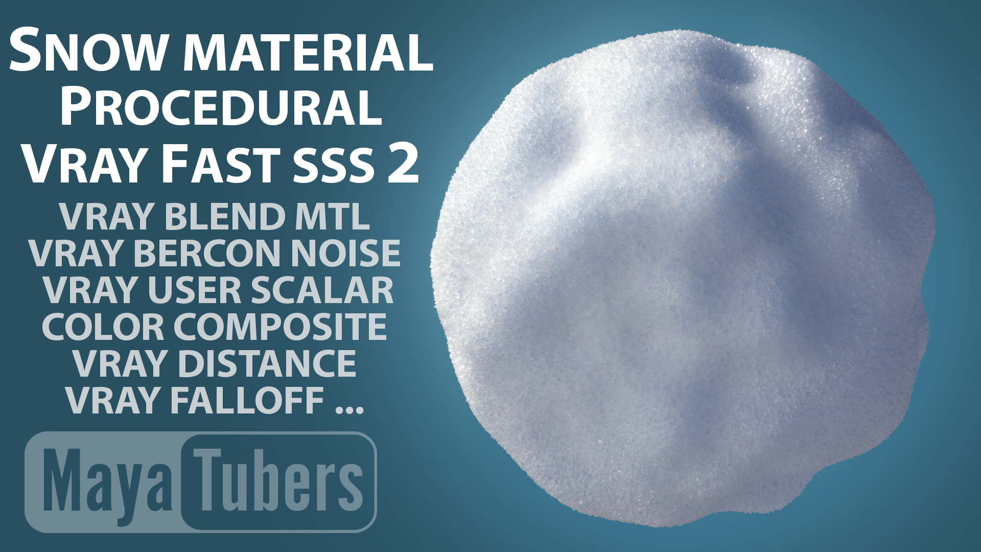 Usar este método para objetos a destacar en tus renders y que este muy cerca de la cámara ya que necesitará de muchos detalles. Después procederemos a crear el Material Complejo de Nieve usando VRay FastSSS2 donde añadiremos un Coat layer parecido al del Vray 5 usando Vray Stochastic Flakes + VRay FallOff para conectarlo en el Vray Blend Mtl, para mejorar los destellos y brillos usaremos la post producción del VFB los Lens Effects con el Glare y Bloom. Para terminar mostraré el potencial del Vray Distance Tex que hará nuestro material interactivo y lo usaré para conseguir el efecto de nieve derretida en contacto con otros objetos. Vray parar Maya.