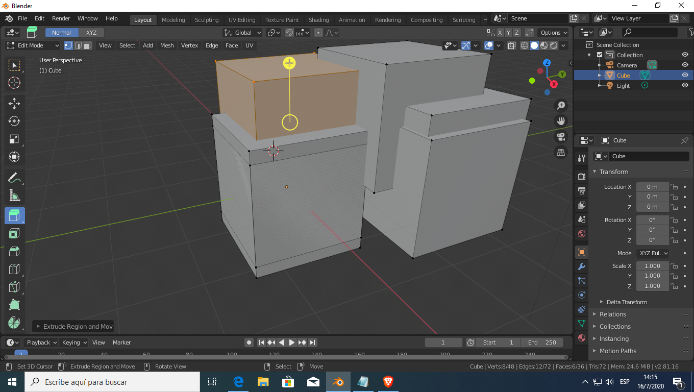 Por ahora estoy trabajando con extrude (extrusión). Ya leí que a partir de un contorno 2d, se puede jalar y crear uno 3d que siga el mismo camino, pero el problema es que no se como seleccionar una cara en especifico, estoy trabajando con un cubo. También quiero ver como puedo seleccionar vértices también. Es decir conocer las herramientas básicas y como aplicarlas sobre determinado elemento. Yo estoy leyendo en internet descripciones básicas, ya con la practica es cuestión de experimentar, si bien mayores aclaraciones también sirven. El problema principal es que no se como aplicarla al objeto, es decir que si a su cara, a su vértices, entre muchos otras cosas que también existen dentro del objeto. Por favor también necesito descripciones básicas sobre las otras herramientas, aunque comenzar con esta es mejor.