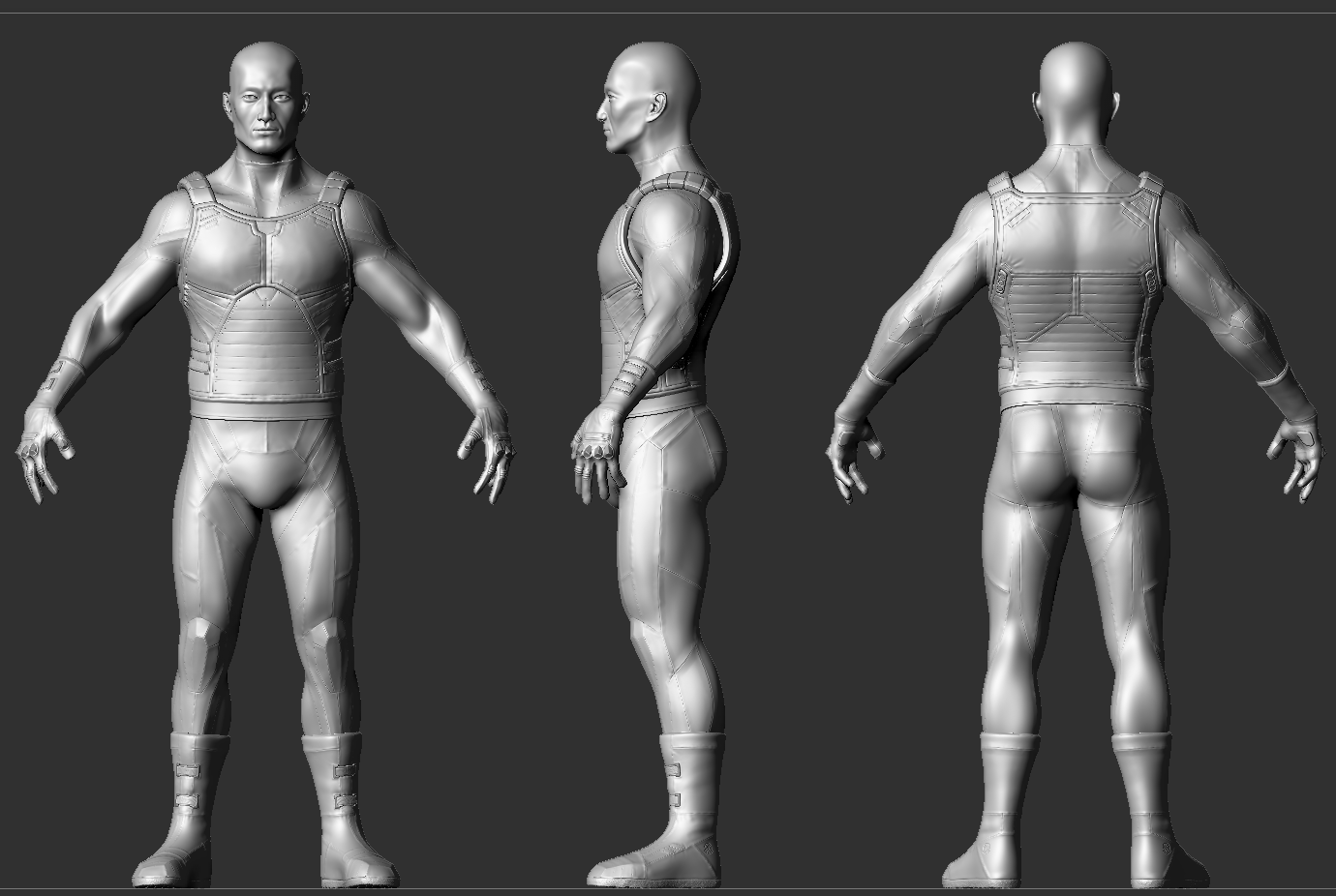 Le queda bien, esas leves arrugas que hace el traje incluso le dan más credibilidad, muy bien amigo, me gusta como va quedando, un saludo.