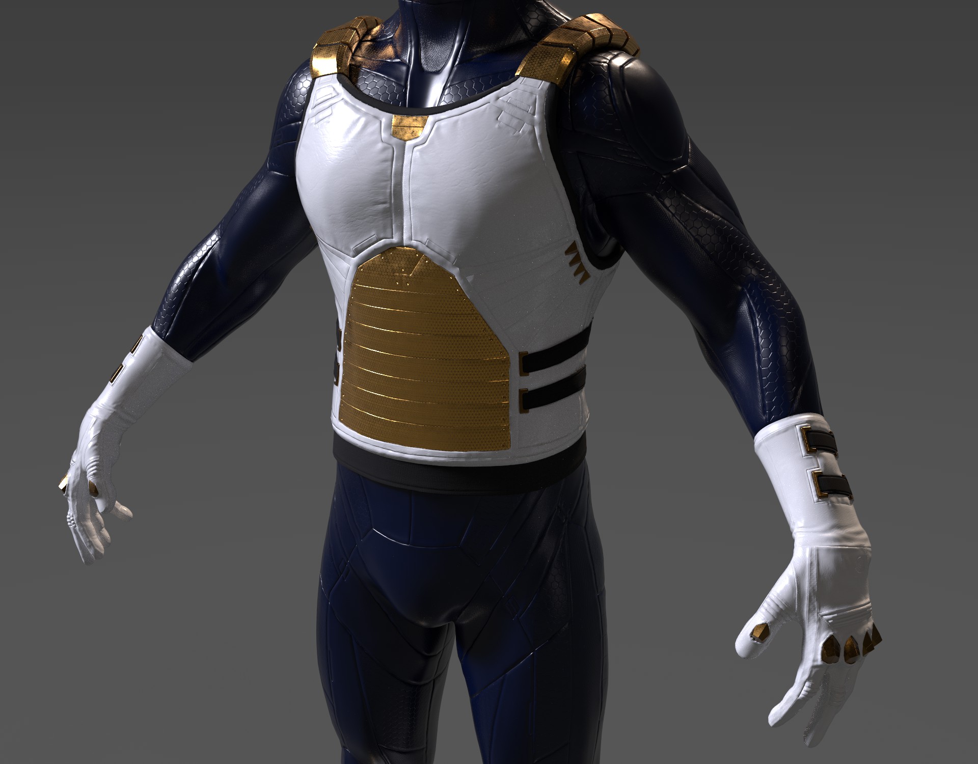 Tengo un dilema. Lo cierto es que los colores clásicos de Vegeta están ya bastante desfasados estéticamente hablando, creo. Por eso pienso que para Super, decidieron ponerle el traje gris oscuro:
