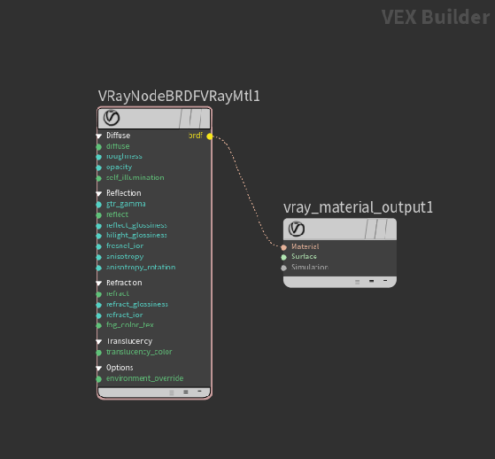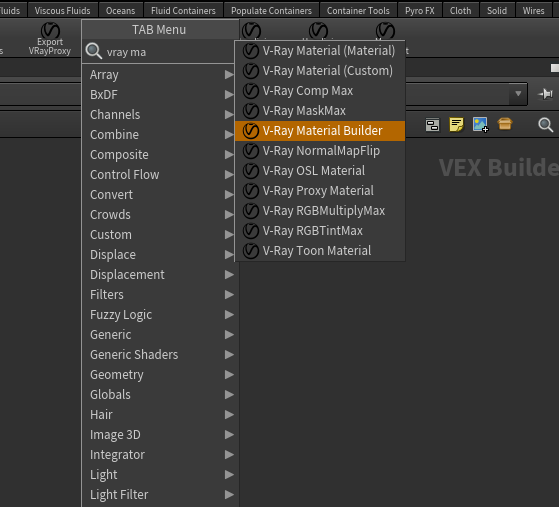 Flujo. Vaya a la red de esteras y cree el nodo V-Ray Material Builder.