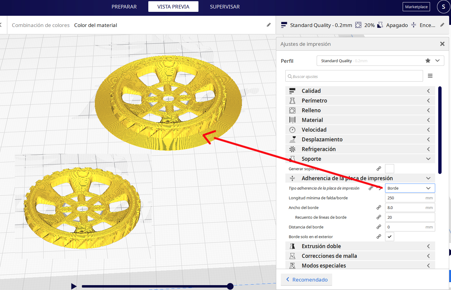 Por otro lado, como teníamos problemas con la adherencia de las piezas a la Cama principal, el Servicio Técnico nos aconsejó que usáramos la Goma Imantada que vino con la Impresora, y al principio bien, pero hay que estar calibrándola permanentemente, y con el calor se va como levantando, y hay que volver a calibrar, y después se empezó a marcar con el Extrusor que por ahí en algunos lugares tocaba más, y la verdad que fue un caos, y se marcó mucho.