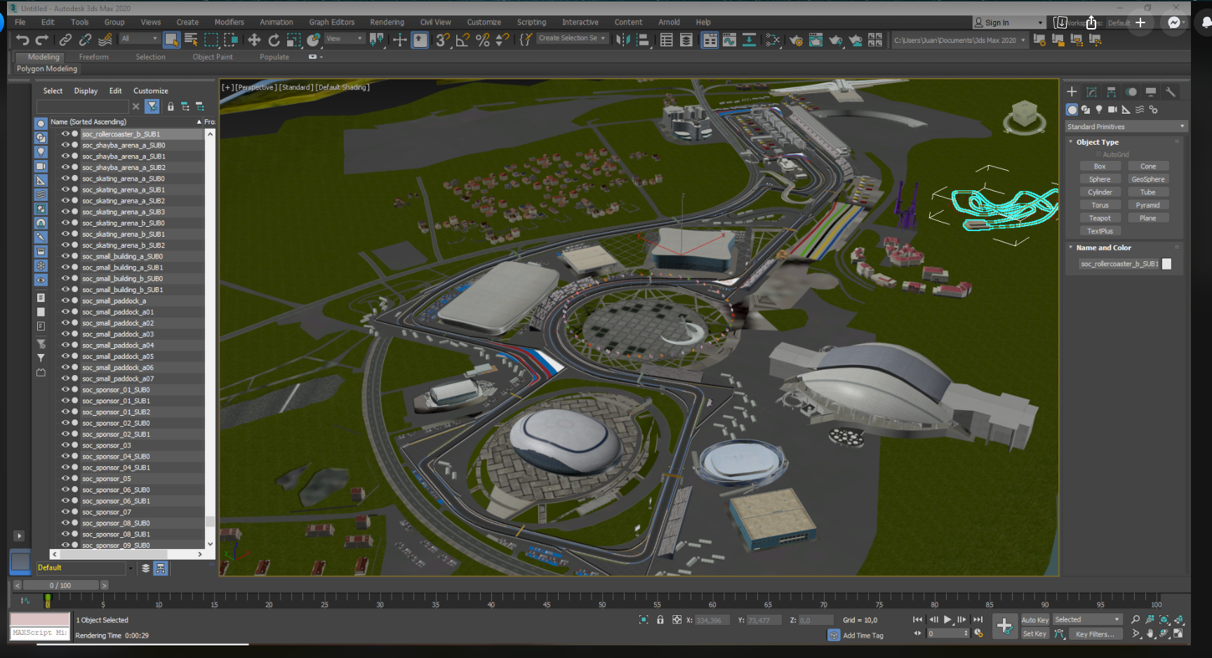 3dsMax, pero creo que he tocado algo y me sale con todas las texturas en blanco y no sé como arreglarlo. A continuación os dejo una fotografía del circuito con sus colores y texturas y otra de como se ve todo blanco. ¿Alguna solución? Gracias de antemano por la ayuda.