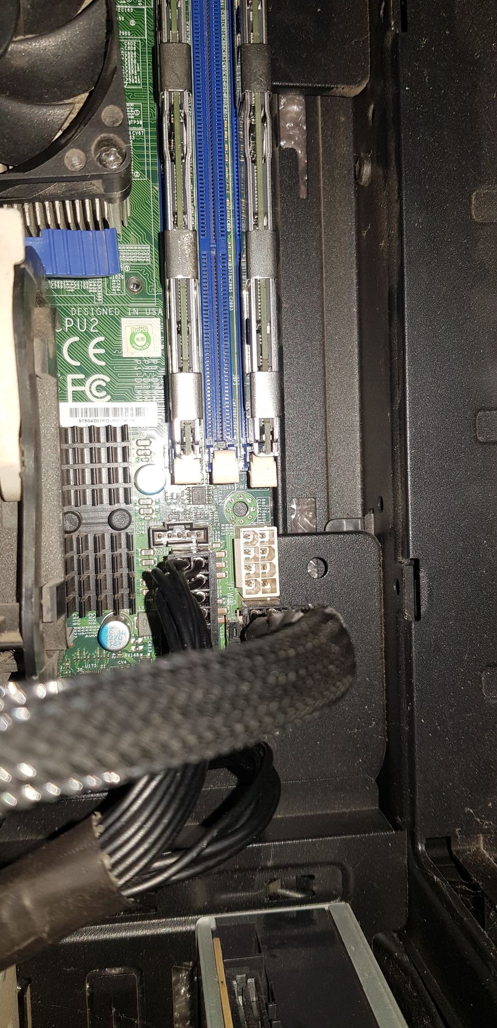 Qué tal amigos, tengo una duda enorme ya que hace unos meses me llegaron mis piezas del PC que me llevaba armando hace unos meses, tengo una duda y es que se sabe que la placa base X8DTL-6F tiene dos procesadores por lo tanto cada uno para hacerlo funcionar requiere una conexión de 8 PINES, todo bien hasta ahí, mi duda entra en que no tengo como alimentar el segundo procesador, ya que hay un cable que me falta que es el de 8 PINES que va en la fuente de poder, les adjuntaré imágenes y la otra que va en la placa, no cuento con ese cable y mañana iré en su búsqueda ya que por donde vivo no he encontrado, ahora he llegado a encender mi pc con la única conexión alimentando el primer procesador y el otro no está conectado pero está puesto en la placa, ahora me di con la sorpresa de que cuando he prendido la PC configurando todo me lee los dos procesadores y es que allí me entra la enorme duda de que se están alimentando bien los procesadores.