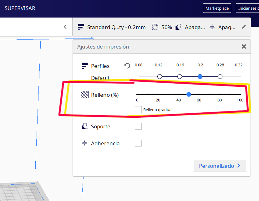 Si es para impresión el valor del relleno se pone en el programa CURA por ejemplo, que es el laminador (Slicer).