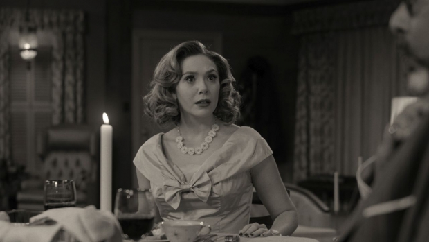Elizabeth Olsen y Paul Bettany, más conocidos por interpretar a Wanda Maximoff y Visión en el mundo Marvel, parecen alegremente emparejados en una vida suburbana idílica, con un guiño visual al show de Dick Van Dyke.