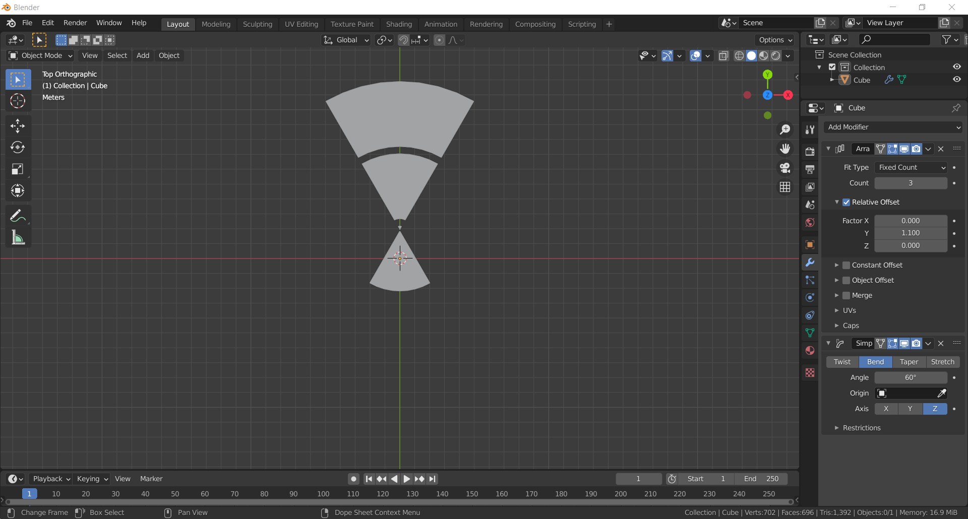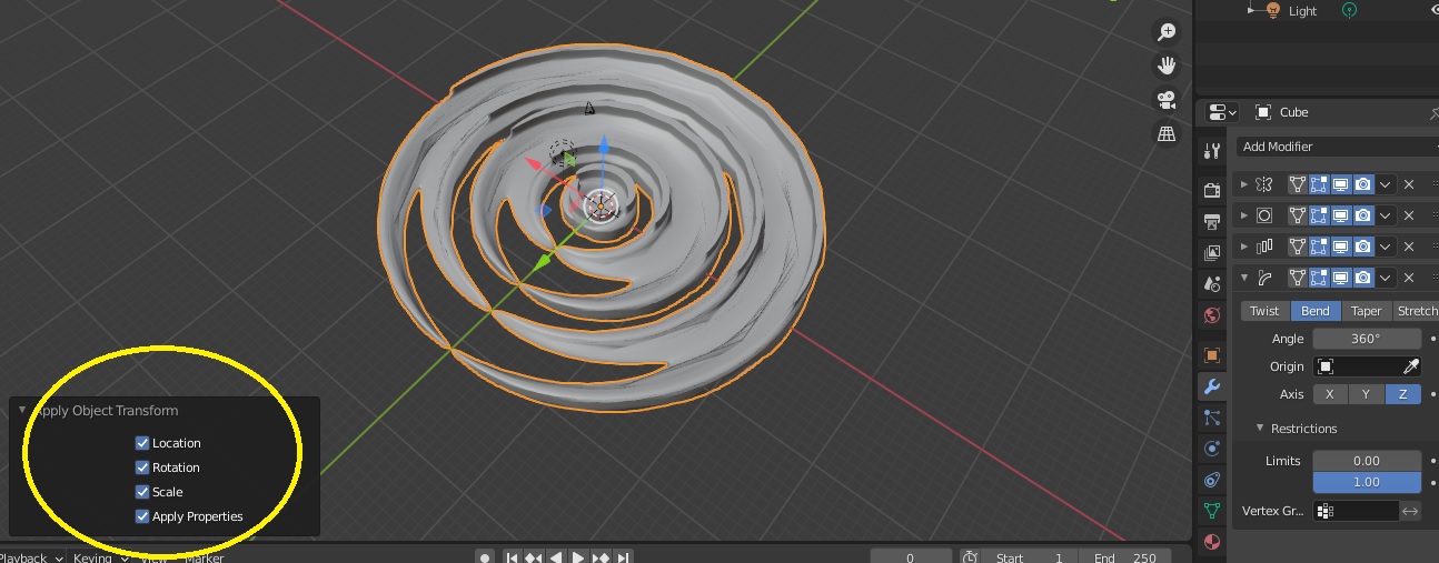 Modificador que me está haciendo llorar, y no le encuentro la vuelta, me dice que le debo poner en Bend 360 grados Axis <Z>
