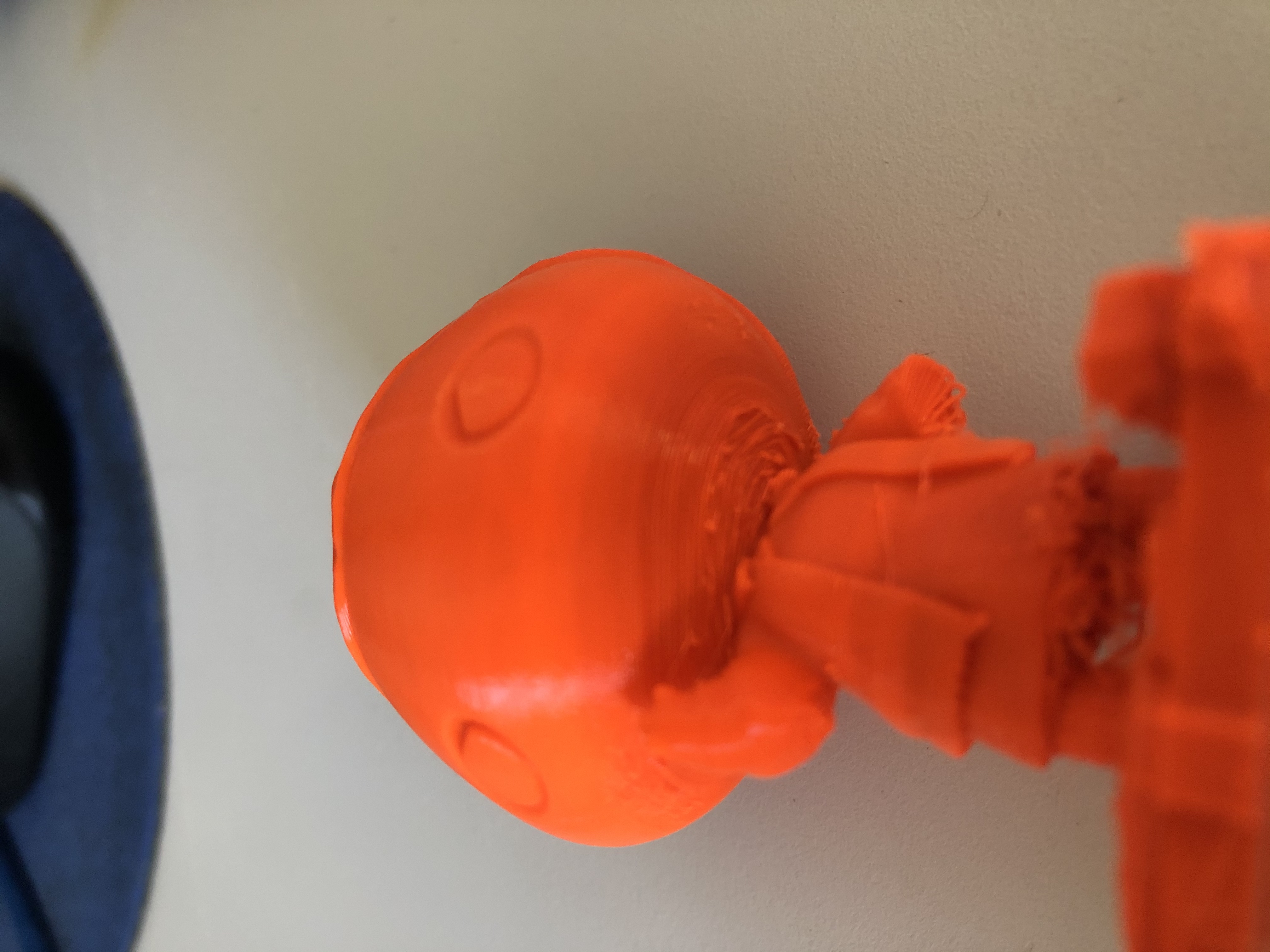 Tiene un brazo cortado que calculo que se debe a que a la mitad de la impresión se rompió un soporte.