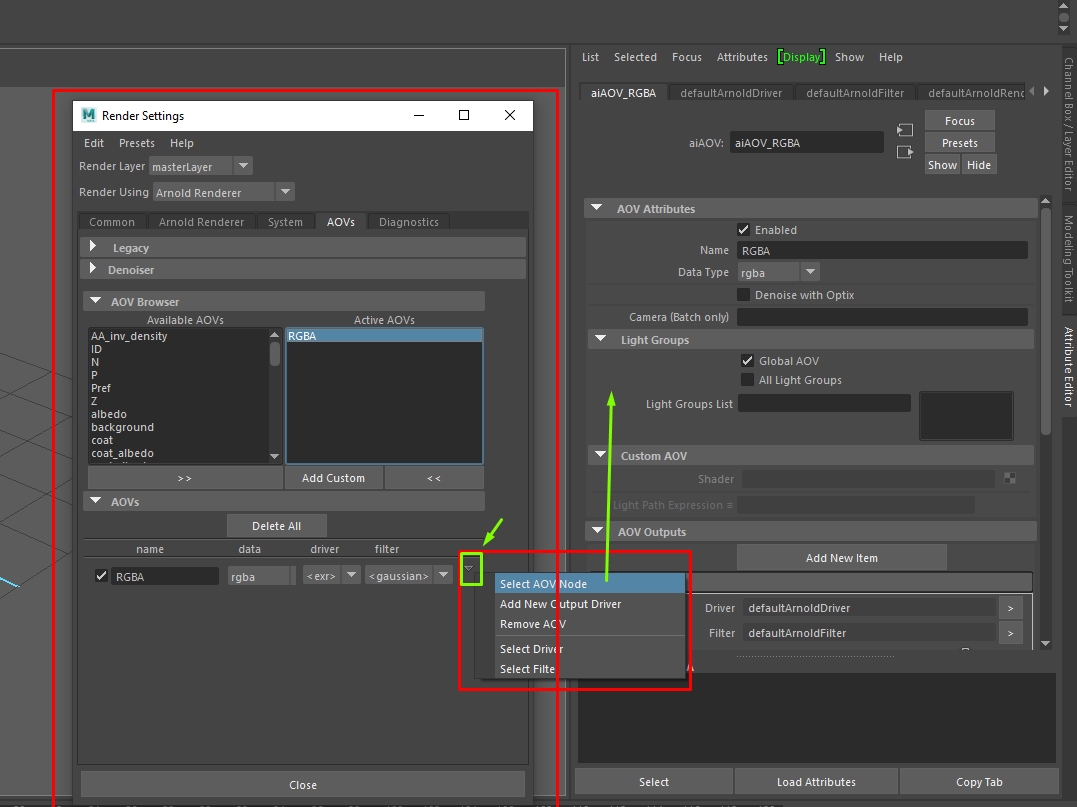 Quiero modificar desde el attribute editor el AOVs, que he visto que sale juntos a las pestañas de editores de Arnold Setting, pero al seleccionar el SRGB del AOV no me aparece nada en el attribute editor, si alguien puede ayudarme se lo agradecería, gracias.