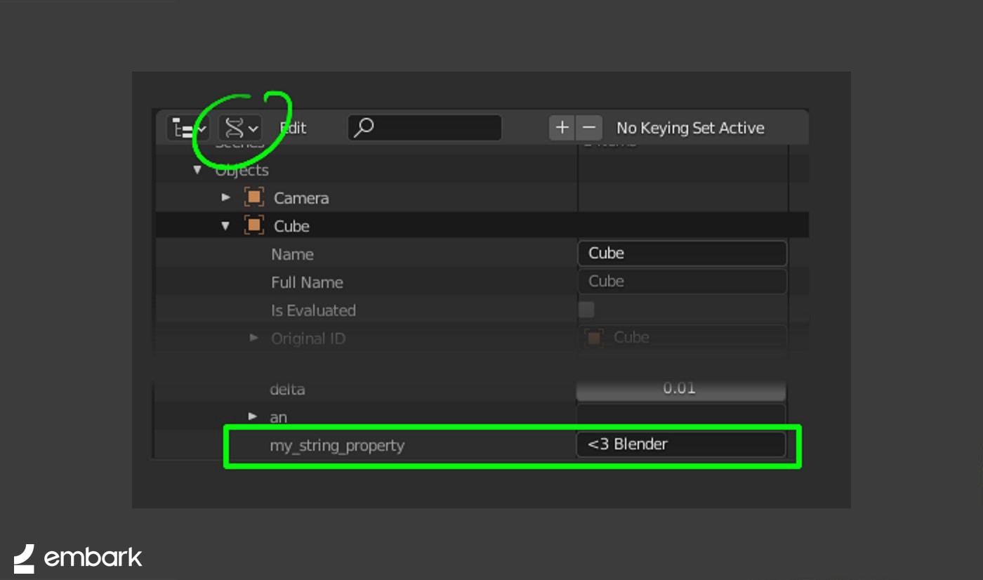 Blender también es muy amigable con las conexiones a otros programas y nos permite implementar sin esfuerzo herramientas y aplicaciones en nuestra canalización. La gestión de datos de los contenidos de archivos de Blender proporcionan flexibilidad, lo que permite almacenar cualquier tipo de datos en casi todos los tipos de datos dentro del archivo. Las propiedades personalizadas se pueden almacenar en escenas, objetos, mallas, colecciones, etc. Las propiedades personalizadas pueden contener básicamente cualquier tipo de datos, como float, string, list, dictionaries y mucho más.