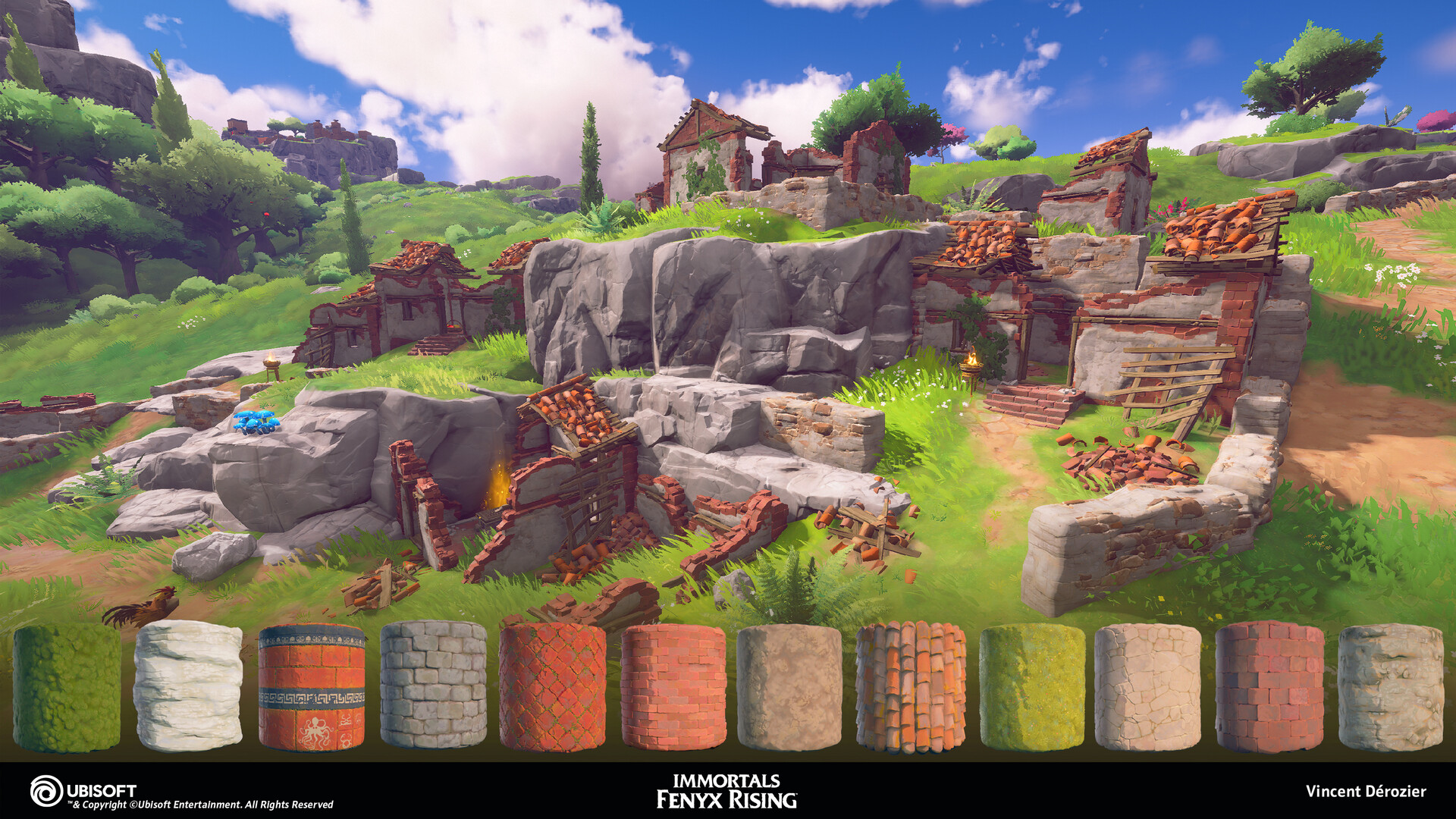 Vincent ha estado trabajando en el desarrollo de Los Inmortales Fenyx Rising como Artista material de medio ambiente principal y fue responsable de la planificación de la carga de trabajo de activos, la identificación visual material para cada dios, así como trabajó junto con el equipo de dirección de arte y guiar al equipo de artistas. Echa un vistazo a un desglose completo de los activos genéricos del medio ambiente y en el Salón de los Dioses materiales en la página de Vincent.