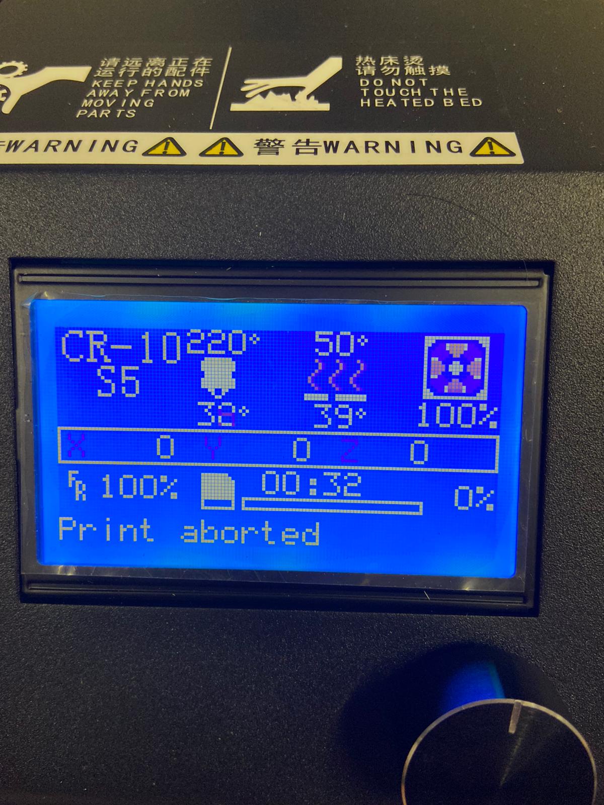Después de una semana con la nueva impresora e imprimir correctamente las 2 primeras piezas, el resto nunca acaba por pararse en plena acción. No hay un punto fijo, tanto puede ser al poco de empezar como últimamente o después de 9h como pasó la primera vez .