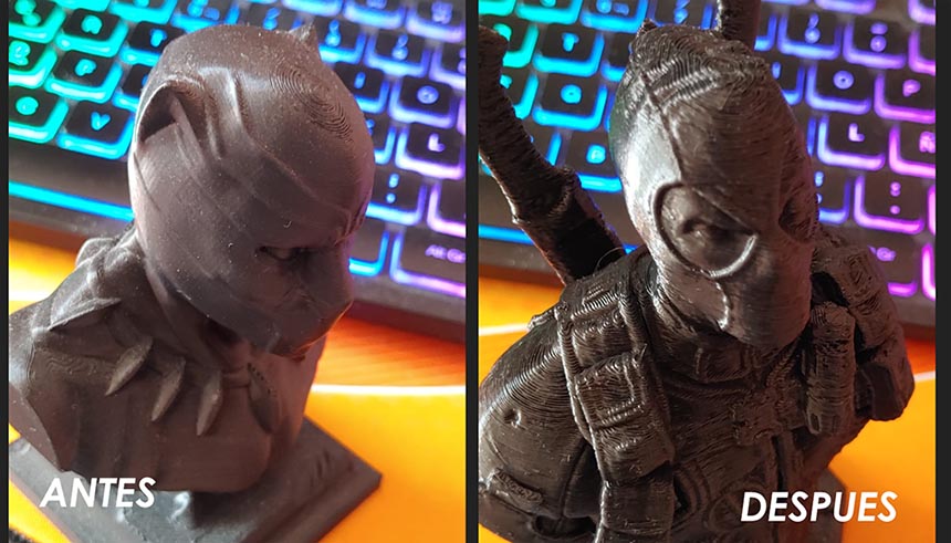 Por el momento no busco realizar postprocesado de las figuras, y me preocupa que al aumentar el nivel de detalle imprima aun peor, por ello busco que quede nuevamente como en la primera figura (pantera negra).