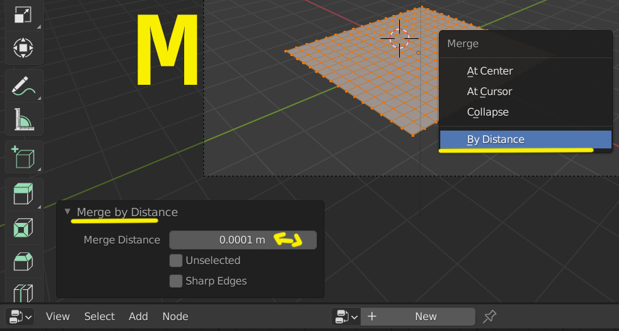 Selecciona todos los vértices y presiona letra M y By Distance.