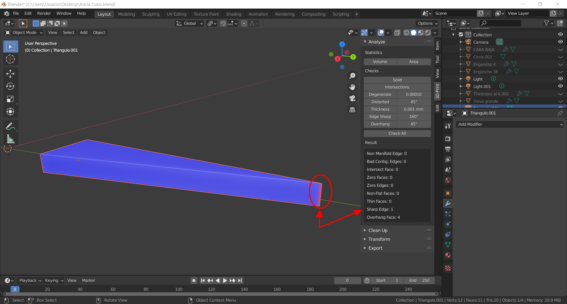 Nada, que se me resiste. He dado grosor al ancla con la cara trasera abierta y lo ha hecho bien, pero en las puntas del ancla el engrosamiento sale mezclado y me da error en el Face Orientation.