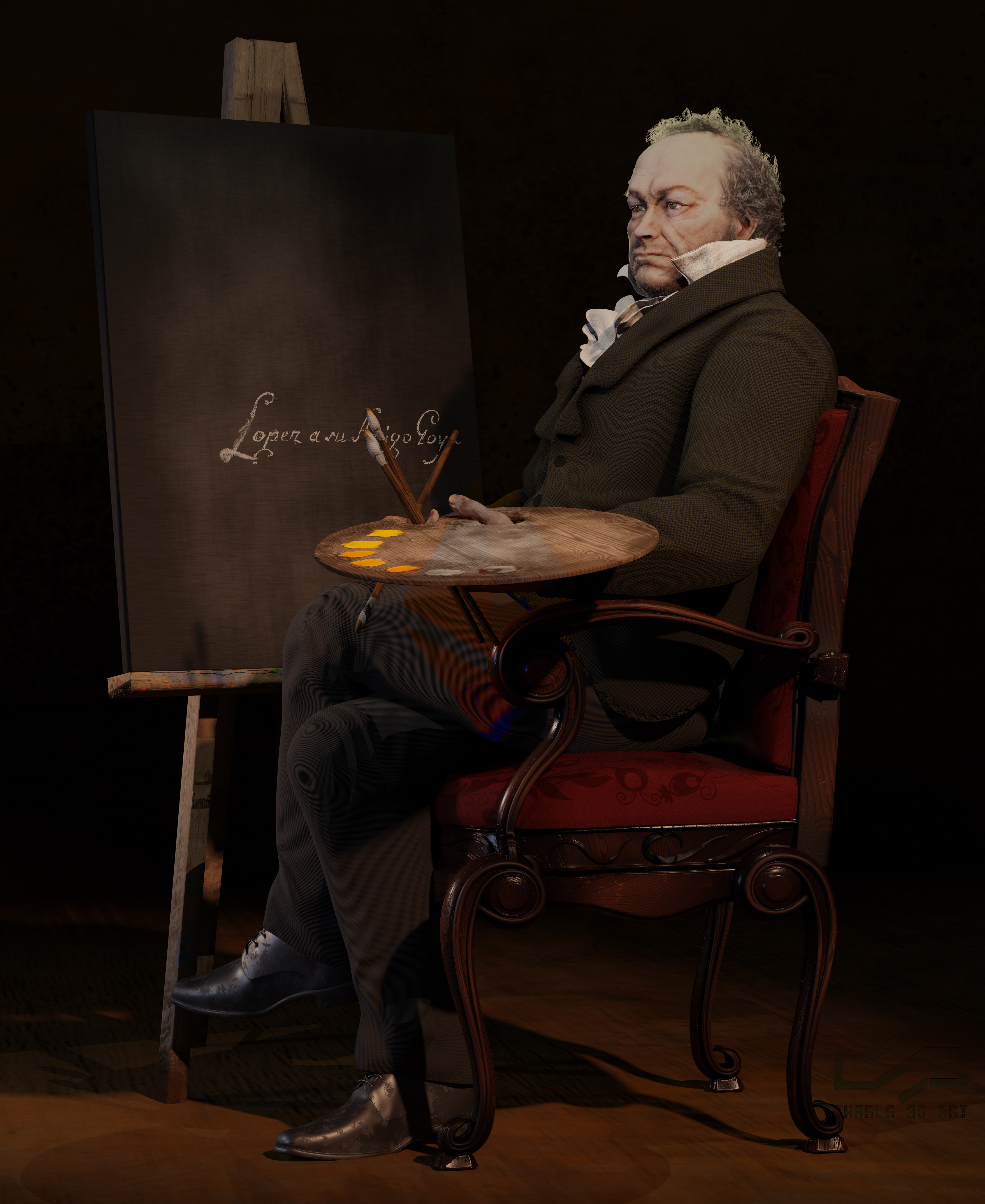 Hola amigos, Por fin terminado mi proyecto, tributo a Goya, espero que os guste, he puesto un render de baja calidad y un par de capturas de pantalla con el proceso de render que estoy haciendo y señalando las horas que lleva y lo que le falta pro terminar.