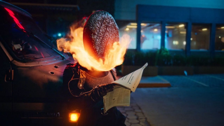 Los batidos de ingredientes artificiales incluyen sumergirse en una trampa de grasa, ser lanzado a través de una ventana e incendiado con un lanzallamas, todo en cámara lenta. El vestuario fue diseñado y creado por Alfonso Likan.