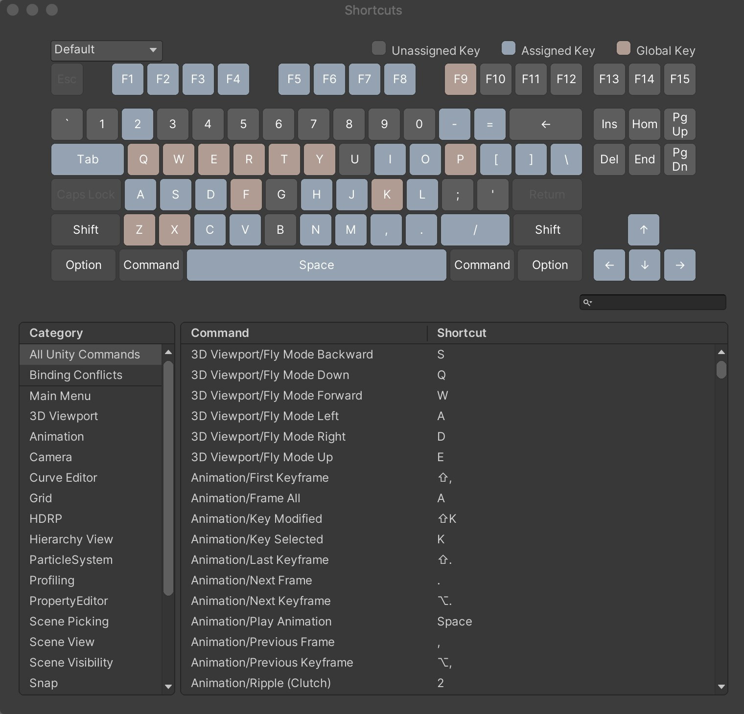 El Administrador de accesos directos es una interfaz visual interactiva donde puedes administrar las teclas de acceso rápido del Editor.