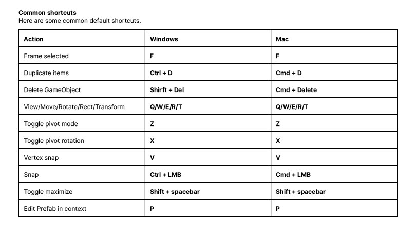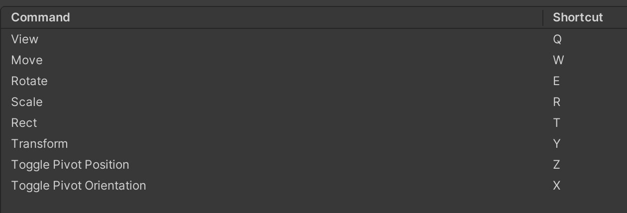 Puedes enlazar cualquier tecla o combinación de teclas a un comando de Unity Editor. Por ejemplo, la clave R está enlazada de forma predeterminada a la herramienta Escala en el contexto Herramientas.