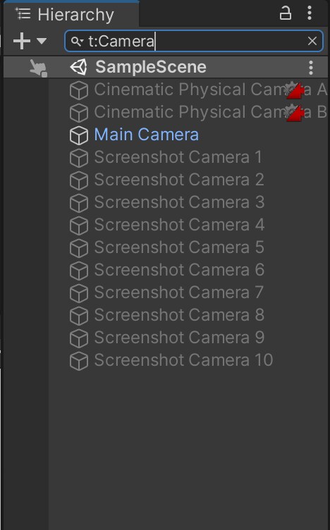 En este ejemplo, buscamos en la escena todos los objetos de tipo Camera: