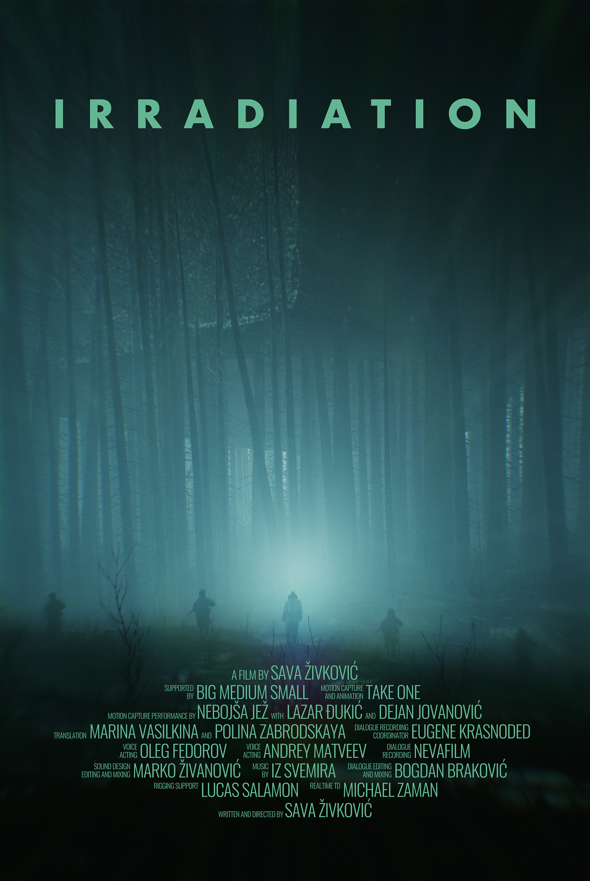 Según el equipo de filmación, Irradiation fue creado en Unreal Engine, Blender, ZBrush, Substance Painter y Adobe Suite. Los activos fueron proporcionados por Big Medium Small.