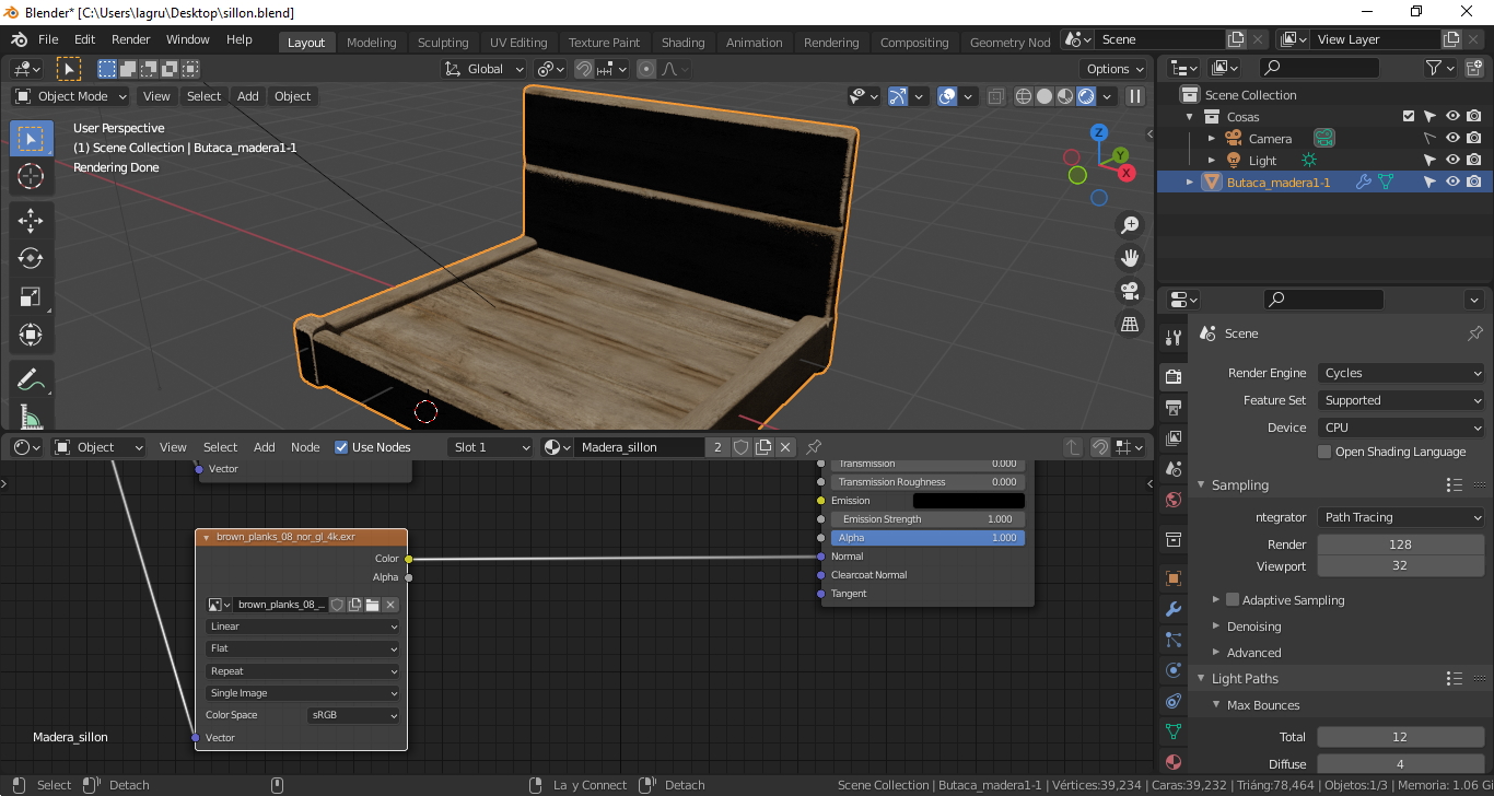El problema principal es que, si ves en las capturas, en cuanto coloco el Normal Map, se oscurece la zona del respaldo y se quedaba así siempre, cosa que a ti no te pasa y no me explico si será cosa de mi ordenador, ya que me ocurría con cualquier textura.