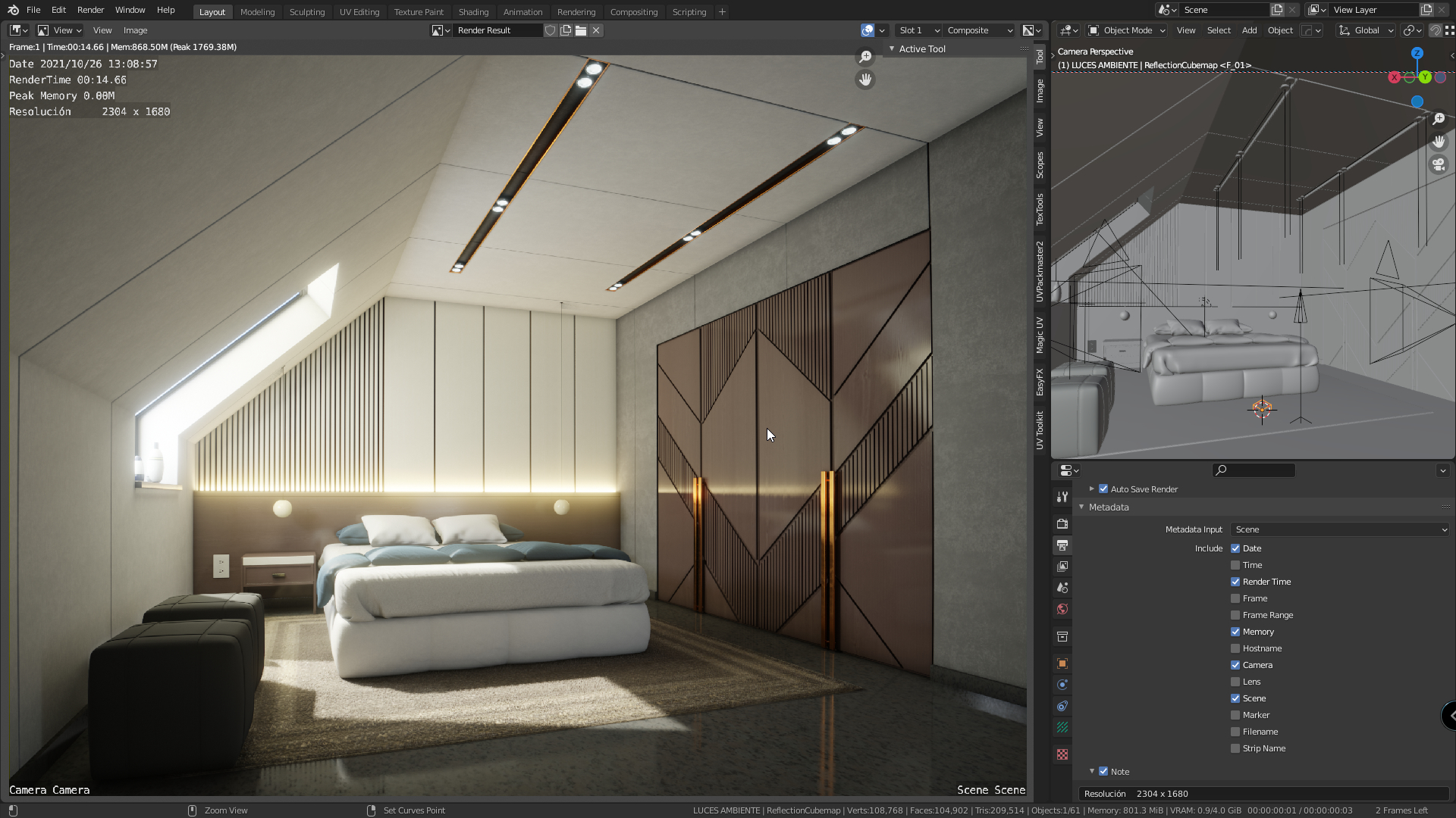 Hola, aquí les comparto imágenes de una habitación modelada en Blender 2.93 más Eevee render.