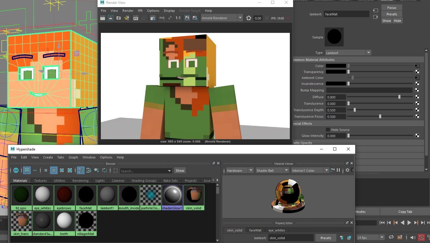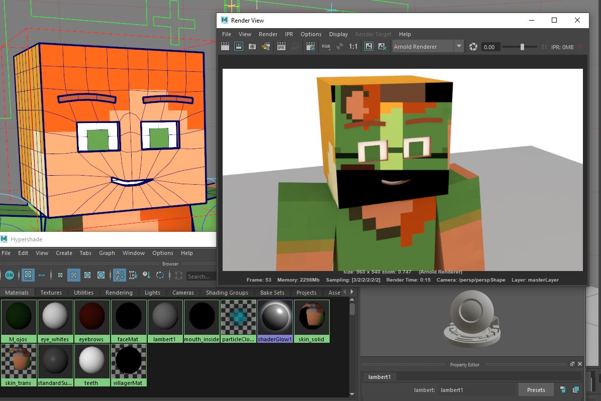 Actualmente estoy tratando de renderizar un personaje con Arnold dentro de Autodesk Maya 2022, pero en el caso del rostro de mi personaje tengo un problema. En este Rig se usa alguna técnica que me permite animar los ojos y bocas del personaje sin deformar la textura de la cara, funciona perfecto. Pero al hace render con Arnold me aparece aplicada una textura superpuesta.